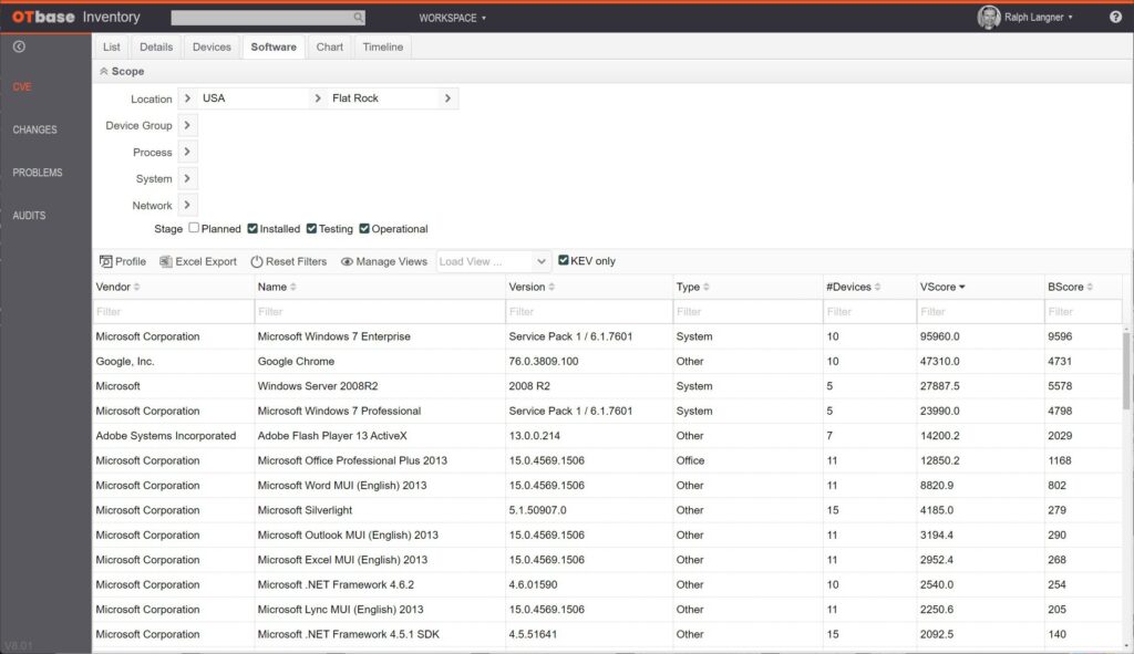 OTbase exposes those software products that contribute most to the attack surface, providing a basis for system hardening