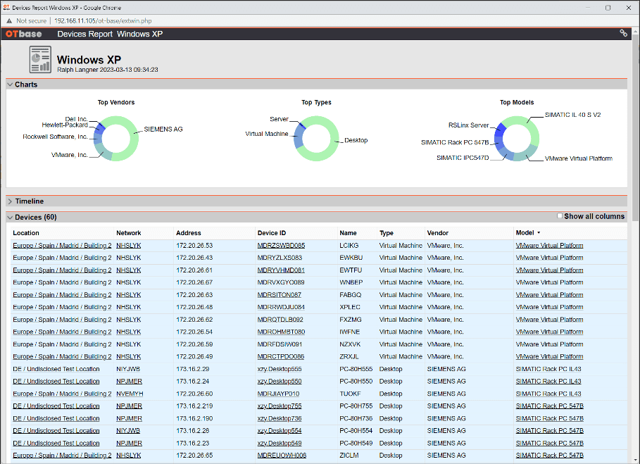 Finding PCs that run obsolete operation system versions is simple with an OT asset management system