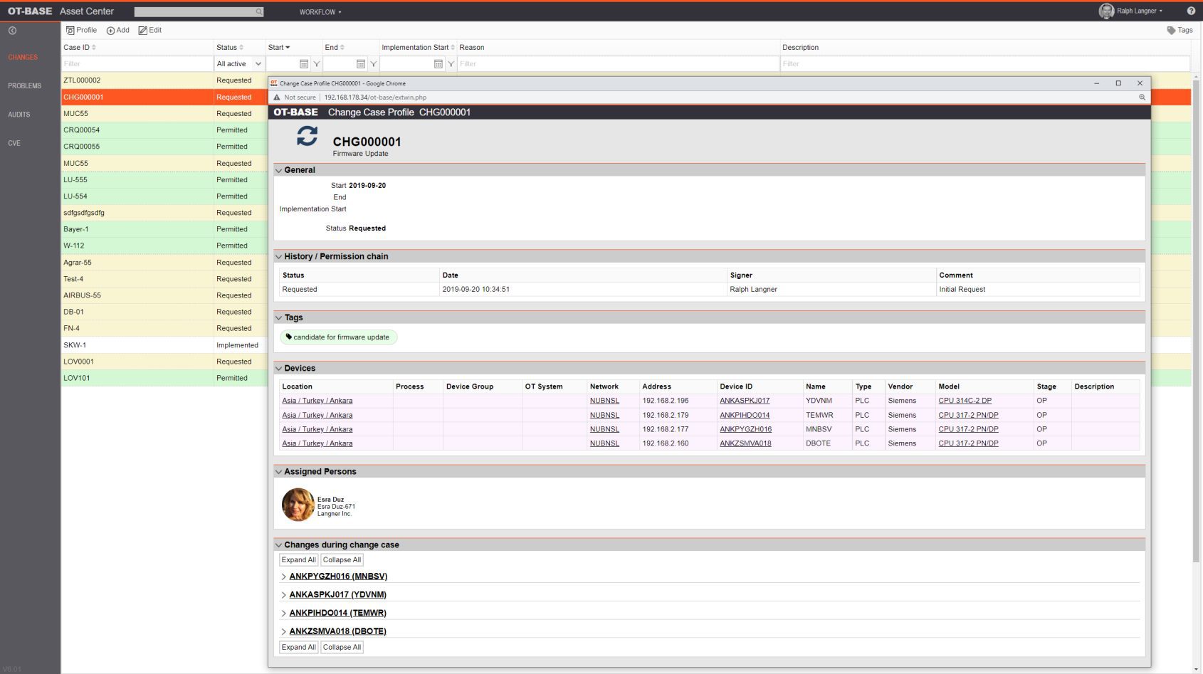 OTbase comes with a change management workflow that allows your team to plan and monitor scheduled configuration changes.