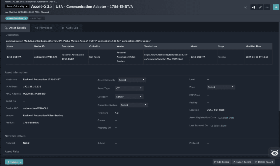 If the SIEM is able, however, to contextualize basic address information with the rich asset information in OTbase, it’s a matter of minutes to identify the nature of the associated device, its location, process function, network neighborhood etc.