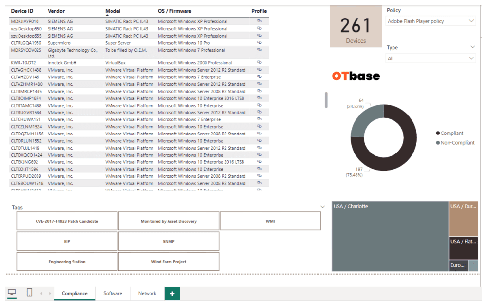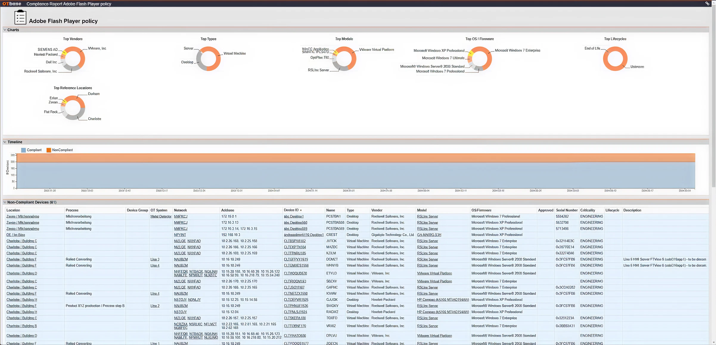 It’s not all that difficult to figure out which configurations and software products cause the bulk of critical vulnerabilities. By establishing configuration policies, your team moves from reactive to proactive. OTbase allows you to spot compliance and non-compliance by continuous reporting. You don’t even need to send the auditor on site, becaus all the data is available at your fingertips, and up to date.