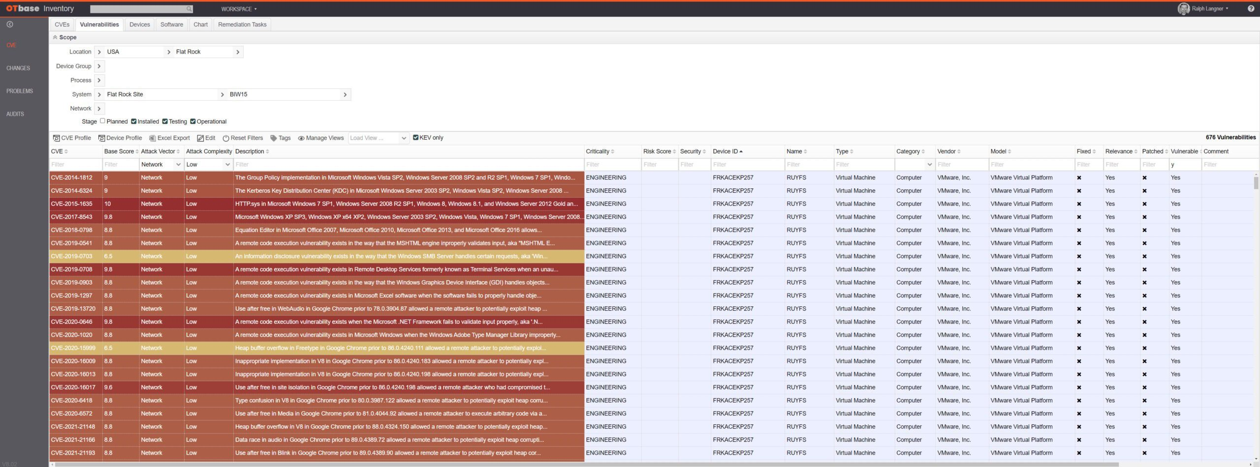 OTbase provides a reliable and detailed account of all known vulnerabilities that affect your installed base. Along with the capability to filter for geolocation, process association, required attack complexity, known exploits, device criticality, the works. You also get the opportunity to create remediation tasks that you can assign to individuals, along with deadlines, suggested remediation, file attachments, and more.